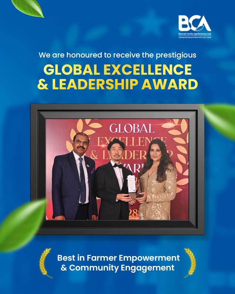 Bharat Certis Agriscience has been recognised with the Global Excellence & Leadership Award in the category “Best in Farmer Empowerment & Community Engagement.” The award underscores the company’s dedicated efforts in uplifting farmers and creating meaningful impact at the grassroots level.